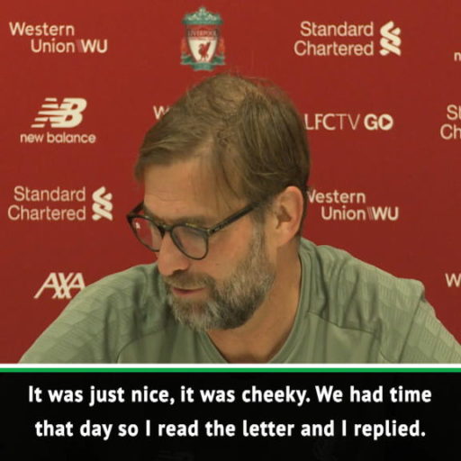 Klopp enjoyed replying to ‘cheeky’ Man United fan letter