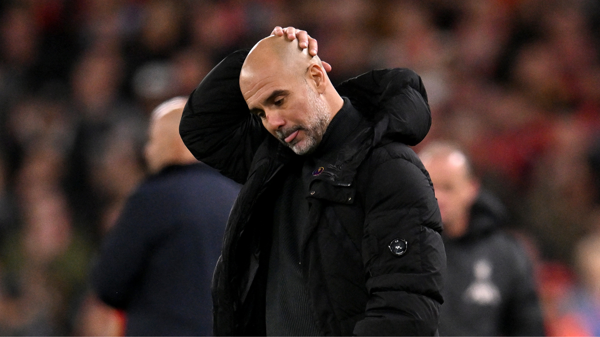 Guardiola was seen holding six fingers up to the home crowd, referencingeach top-flighttitle he has won, after ‘you’re getting sacked in the morning’ chantsechoed around Anfield.
