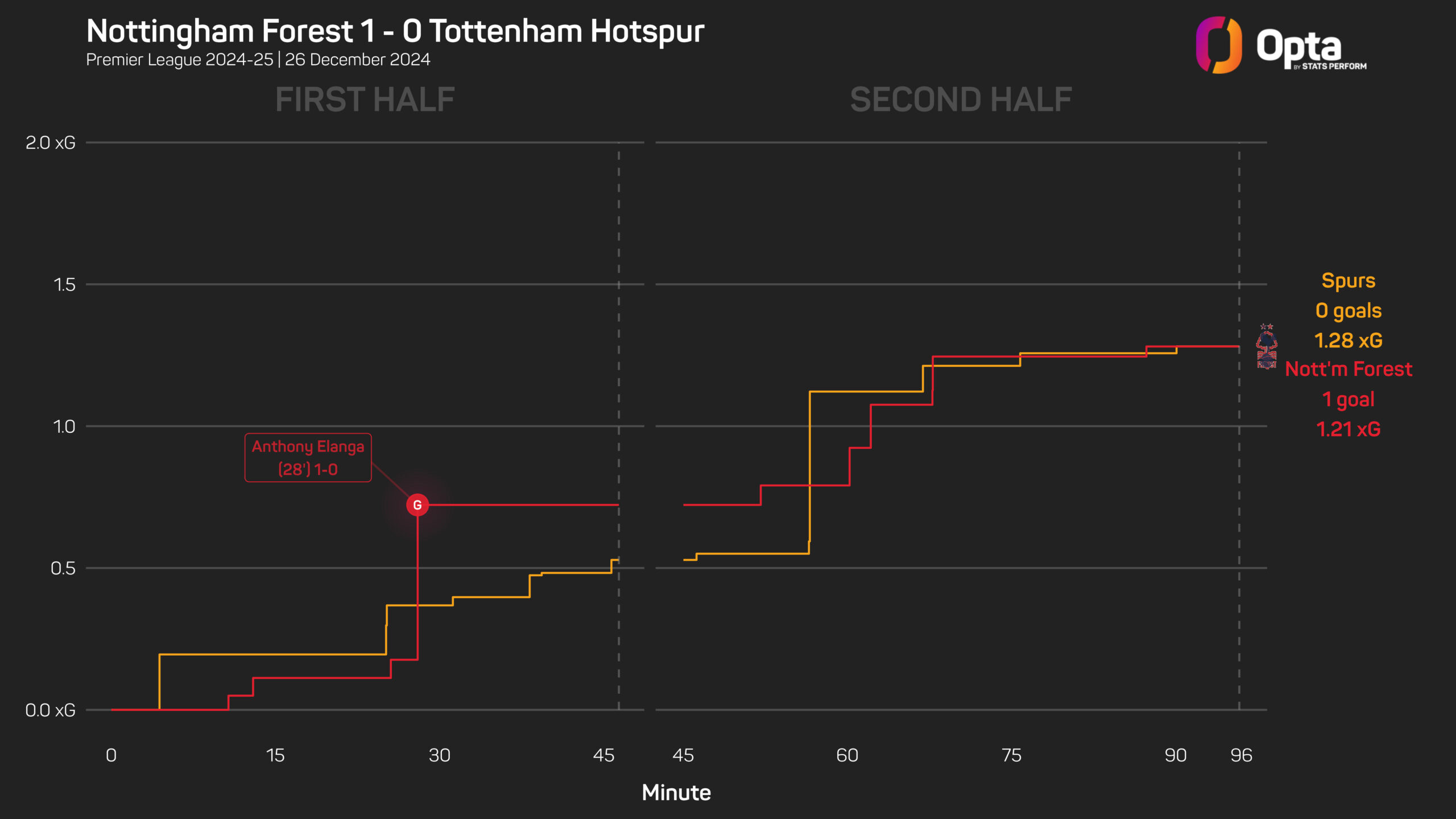 They were also marginally beaten in the expected goals (xG) metric, registering a total of 1.21 xG from their 10 shots compared to Spurs’ 1.28 from their 13 attempts.