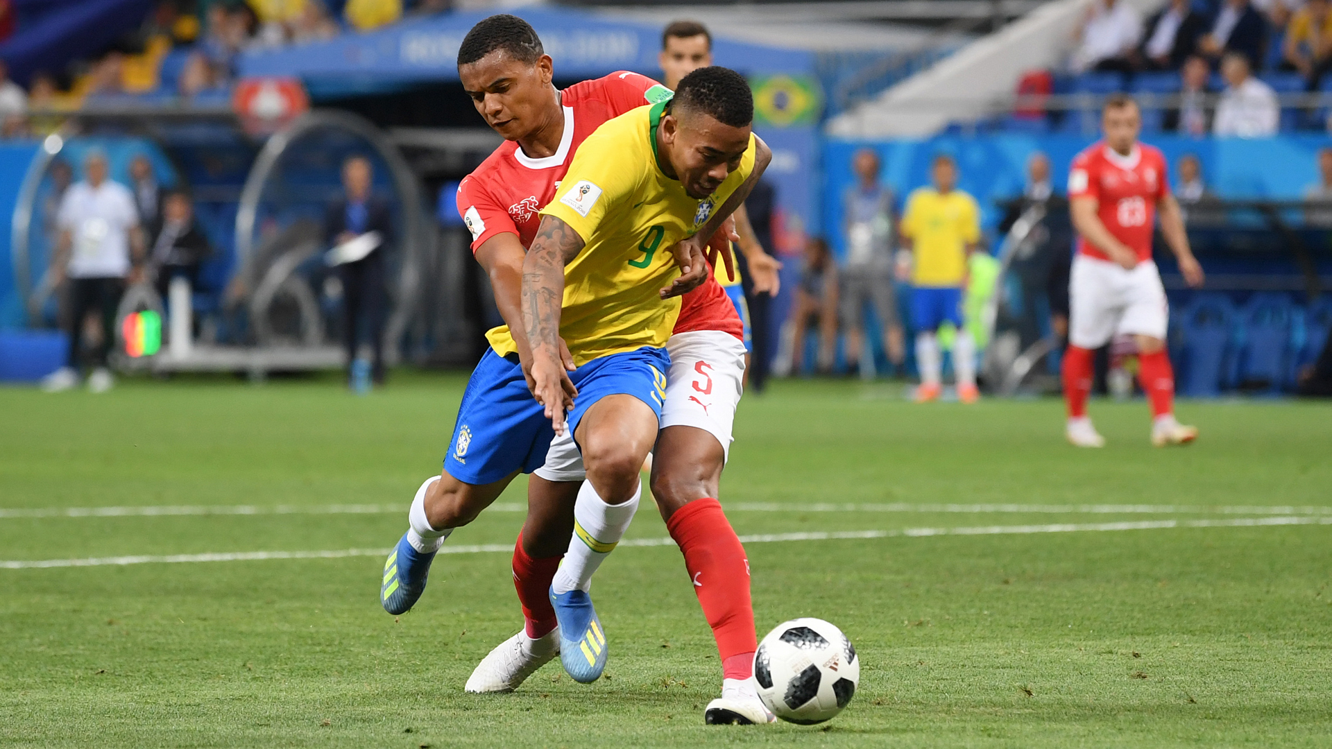 Jesus went down in the area under a challenge from Manuel Akanji in the second half of the 1-1 World Cup draw on Sunday.