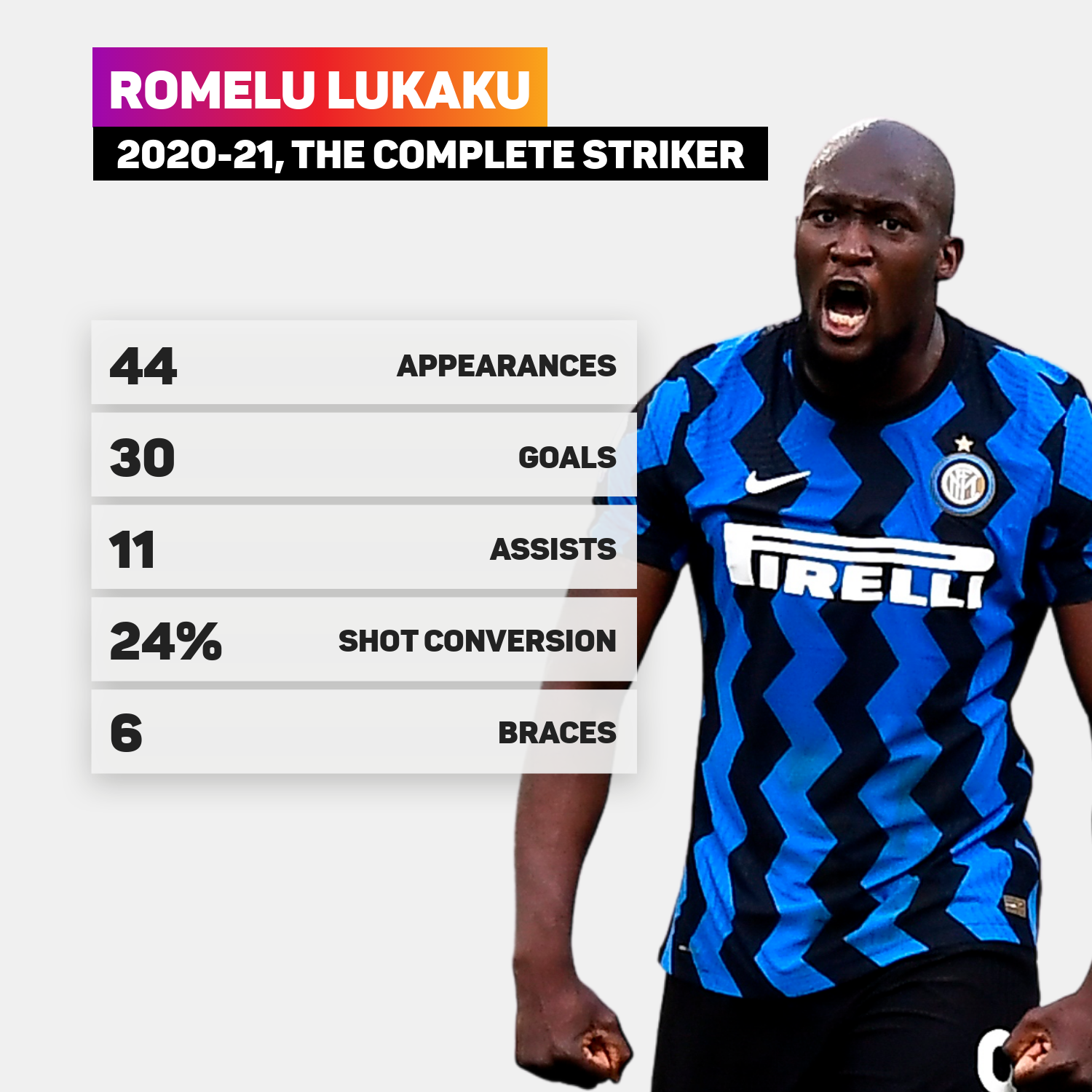 Lukaku led Inter to their first Serie A title in a decade last season, netting 24 league goals.