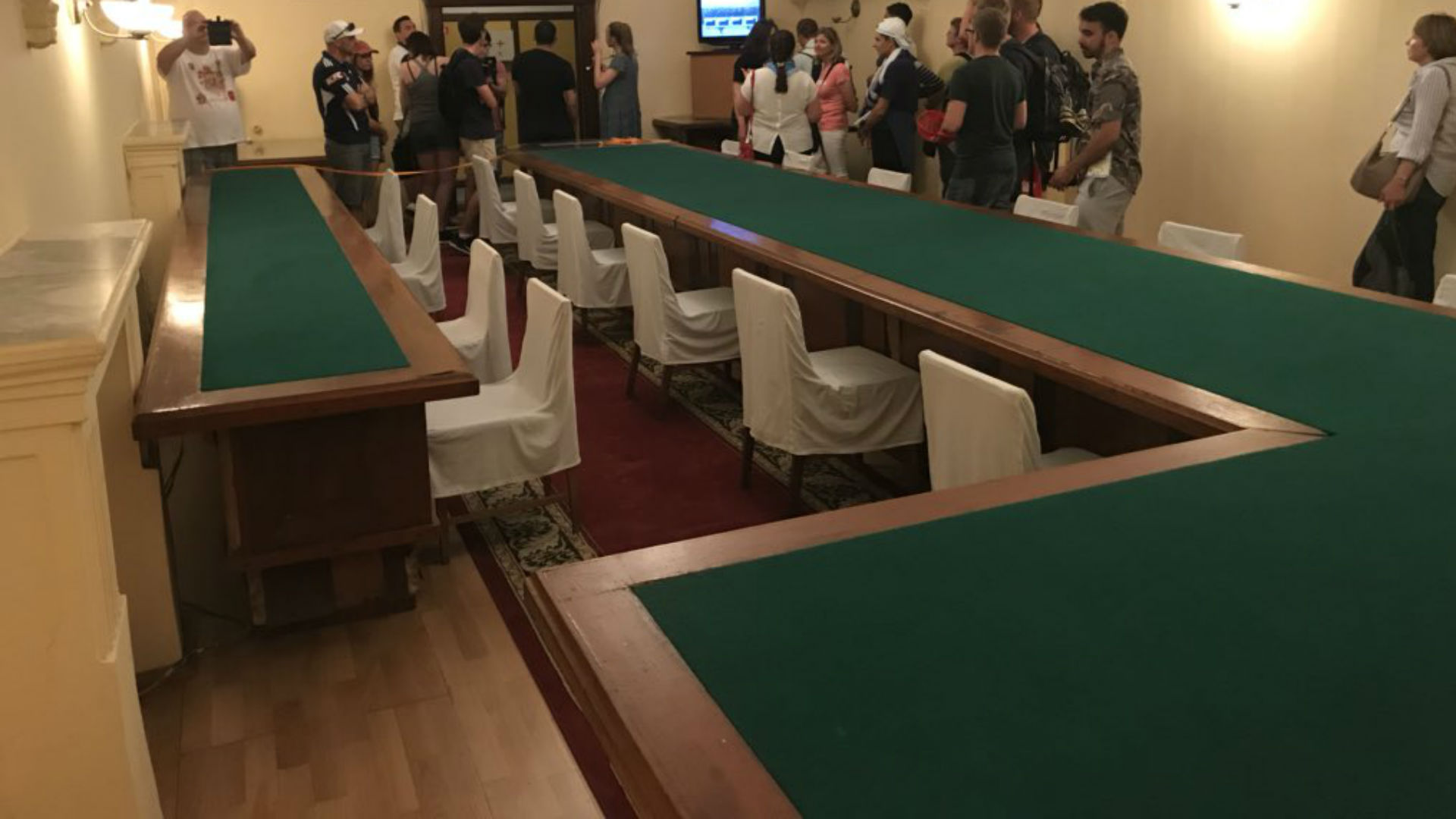 Squeezing past each other on the narrow stairways, supporters from Australia – who saw their side draw with Denmark at Samara Arena on Thursday – and Uruguay, who face the hosts at the same venue on Monday, stopped to take pictures of the conference room, Stalin’s personal office and other areas adorned with information displays.