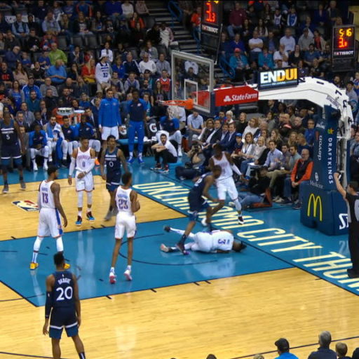 VIRAL: Basketball: Nerlens Noel stretchered off after horrific fall in Thunder defeat
