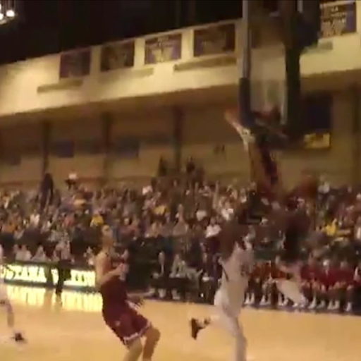 Ouch! College basketball player headbutts backboard while attempting block
