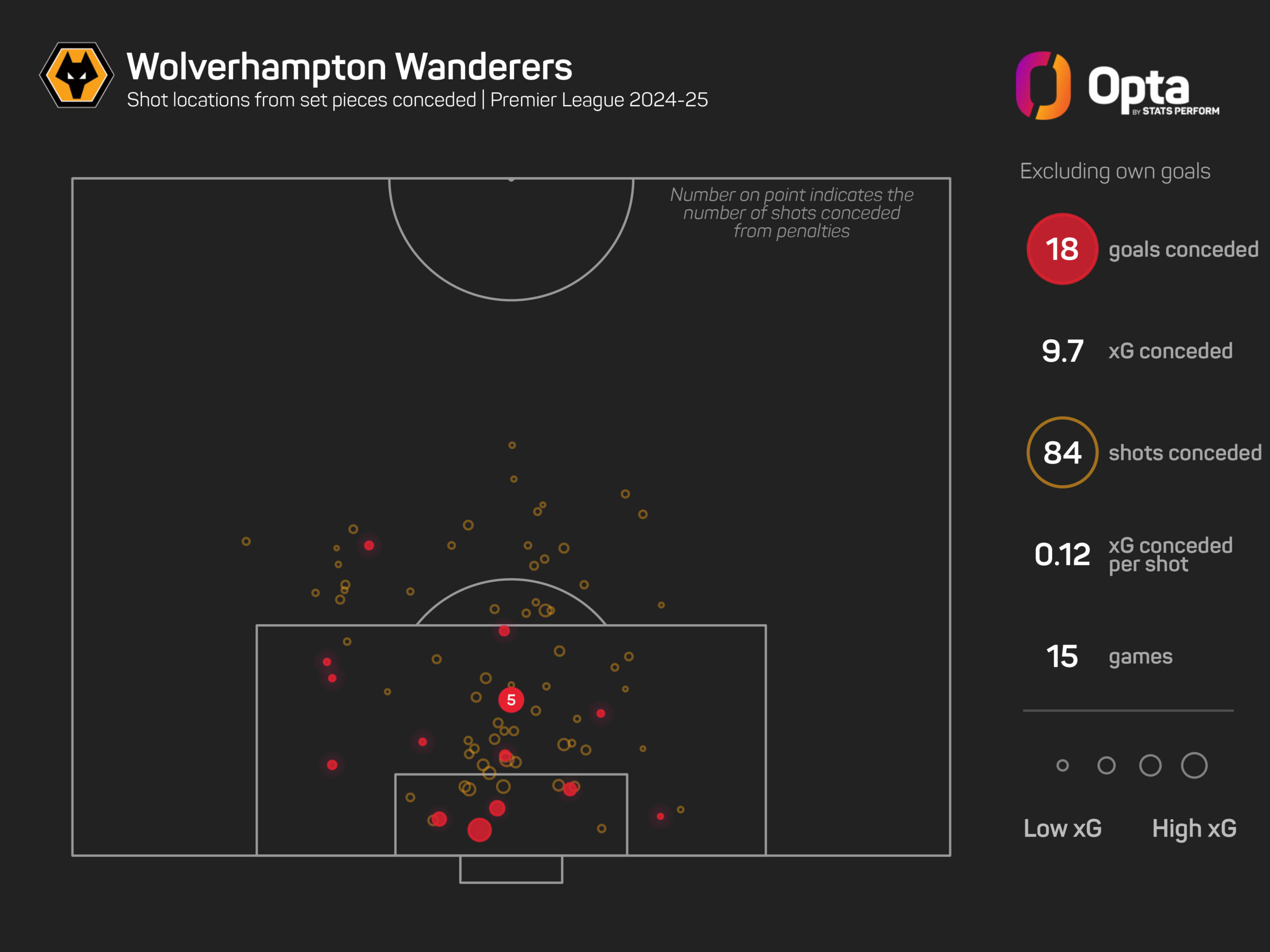 O’Neil’s side have been particularly vulnerable from dead balls, conceding a league-high 15 goals from set-piece situations this term – only in their relegation campaigns of 2003-04 (20) and 2011-12 (18) have they conceded more in a single Premier League season.